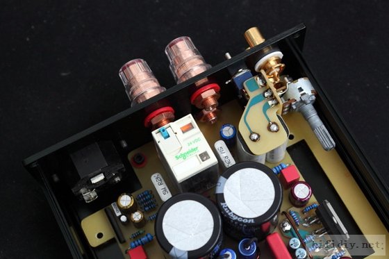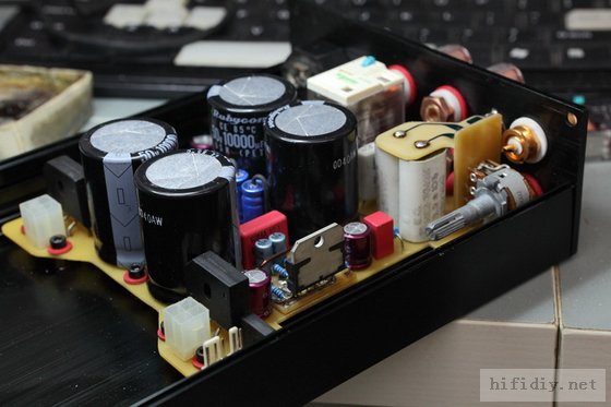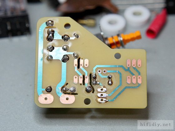 电路采用的基本就是官方电路,只是输入耦合个人认为2-3uF比较好听。朋友要求有两组输入可以切换,所以加了个信号切换继电器。