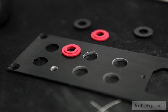 PCB有个别孔稍微有点偏差,用小圆锉稍微修一下解决。安装螺丝用M3内六角,垫了电木垫片。电木片比较有弹性,可以锁的比较紧。