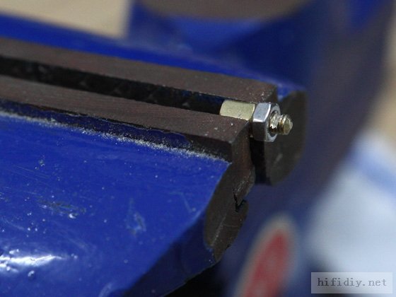 机箱底板是2mm厚,能买到的六角铜柱螺丝,最短也有5mm。而由于机箱内部高度问题,又不能加垫片垫高。所以套上个螺母,差不多2mm,然后把多余的锯掉。断口用锉打平,把螺母退出来的时候可以当临时板牙,给受损变形的螺纹做修复。最后再稍微修下毛刺即可。