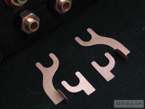 原本的喇叭端子尾端的焊接用半圆口被我锯掉了,这才发现,原来所谓的纯铜端子其实是黄铜镀红铜。不知道正品CMC是不是也这样,不过,端子做工还不错,对得起价格。