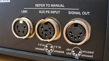 背板的端子很少,但很特别。CD5X的后背板上,只有一个联动控制的端子、一组RCA输出、一个DIN端子输出及一个供电源升级的端子,而光纤、同轴数字输出端口一概欠奉,也就是此机只提供模拟输出,没有数字连接口。不提供数字端口是Naim CD唱机的一贯做法。现在这样还算好的呢,总算提供了RCA输出端口,早年它家的CD唱机可是只有DIN端子输出的。这可能与Naim喜欢自成系统有关,因它的产品涵盖音响的方方面面,从CD唱机调谐器、放大器、音箱一应俱全,且都是成系统设计,所以发烧圈也有这样的共识,就是听Naim要听一套,否则很难听出Naim的音乐味。Naim很负责任地将CD5X的DIN端子的各脚与信号的连接以图的形式放在此端子的上方,有助于使用者了解。电源升级口也是CD唱机的一个特别设计,厂家有特别设计的一个电源可以与此CD唱机连接,不过价格不菲,约是CD 唱机2/3的价钱。由于价格昂贵,所以没能一齐拿下,所以也就错过了试听的机会,不过据代理商介绍,用了此电源,声音的改善很明显。